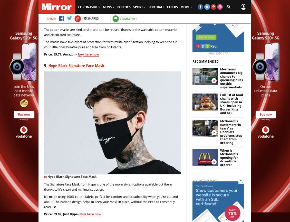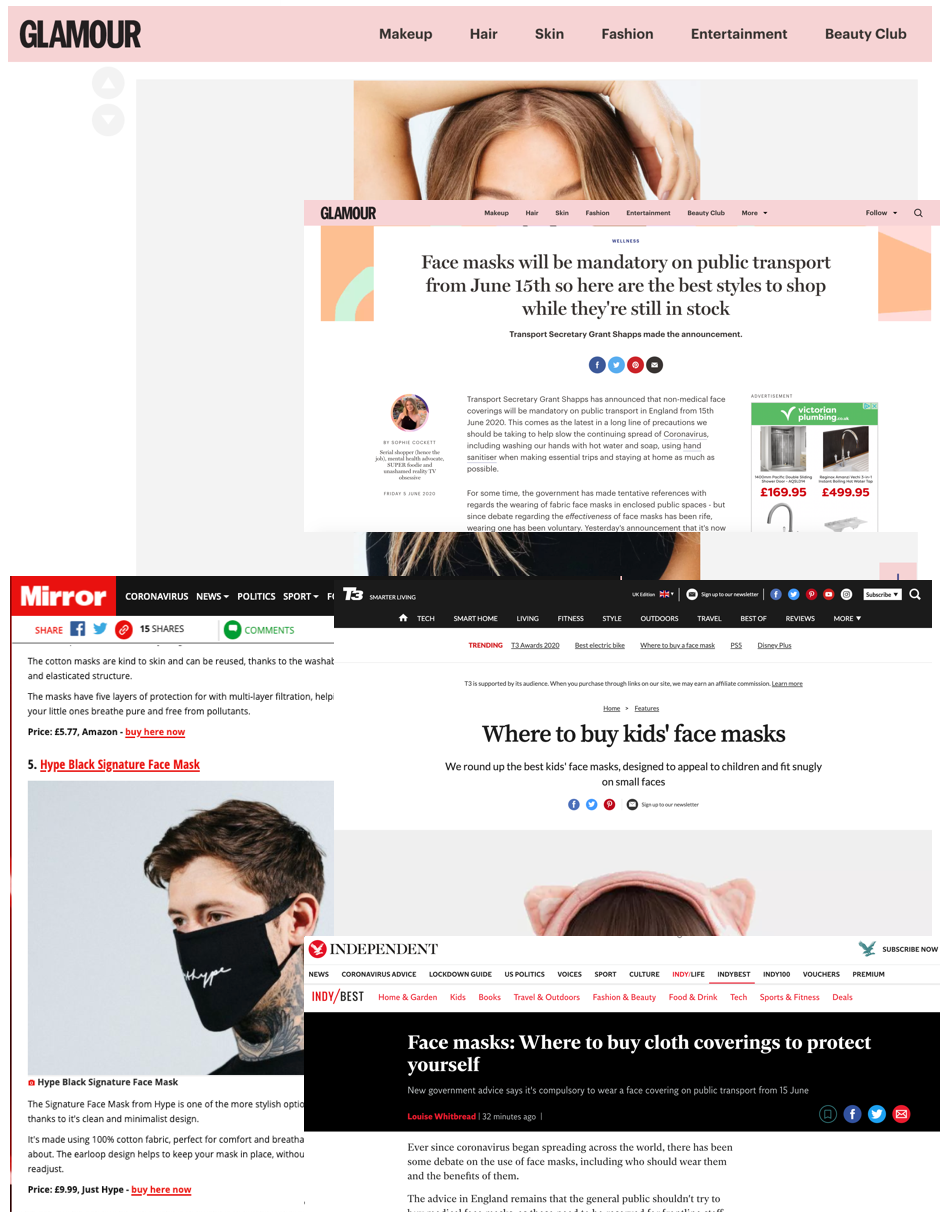 Conversion Digital placed a heavy focus on Hype’s “lockdown friendly” products, predominantly face masks, with key editorial publishers-leading media outlets such as Glamour, Mirror, Independent, and T3 subsequently featured Hype and surpassed all other affiliates by 50%.